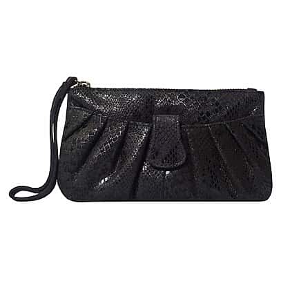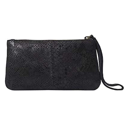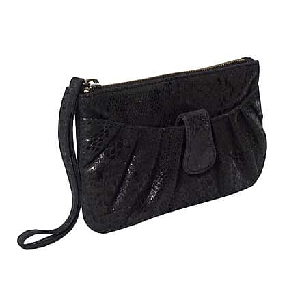 - CLOSURE: The metal zip top clasp on this leather wristlet opens to completely lined branded inside