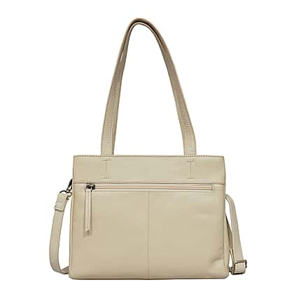 ASSOTS LONDON Debra Genuine Pebble Grain Leather Double Compartment Shoulder Handbag (Size 27x22x7Cm) - Cream