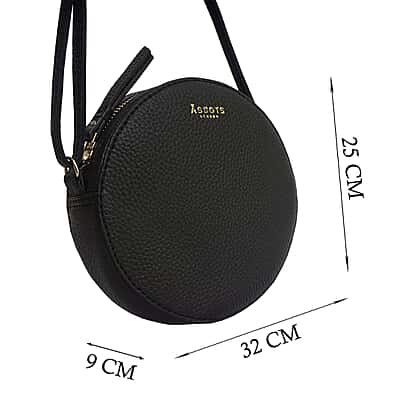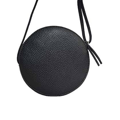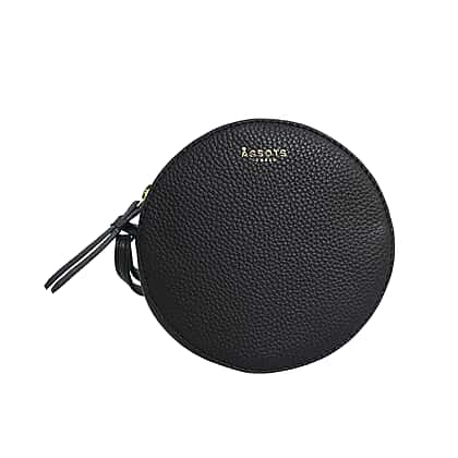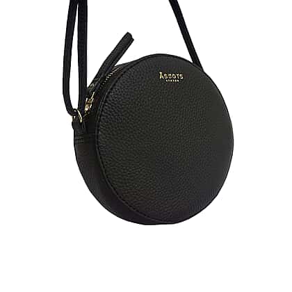 Assots London DISC Genuine Leather Round Mini Crossbody Bag - Black