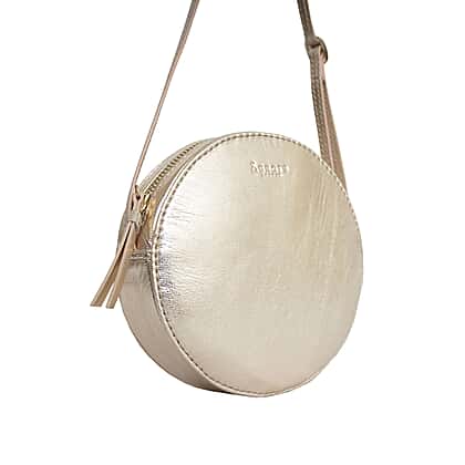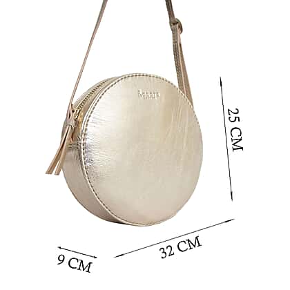 Assots London DISC Metallic Genuine Leather Round Mini Crossbody Bag - Rose Gold