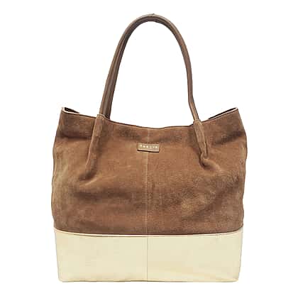 ASSOTS LONDON Donna Genuine Suede Leather Slouchy Metallic Shopper Bag - Tan and Yellow Gold