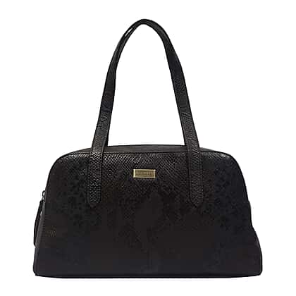 ASSOTS LONDON Eleanor Genuine Bourbon Leather Shoulder Bag (Size 35.5x21x7) - Black