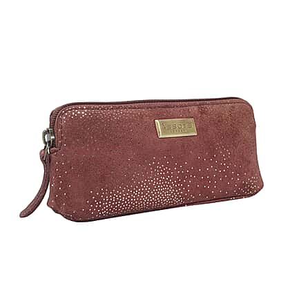 Assots London Emily Genuine Leather Cosmetic and Toiletry Bag (Size 18x3x8 cm) - Maroon Red