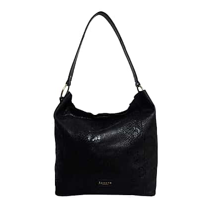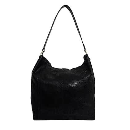 Assots London ESME Genuine Suede Leather Python Print Hobo Bag - Black