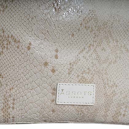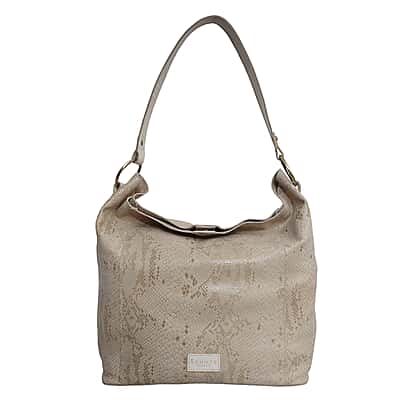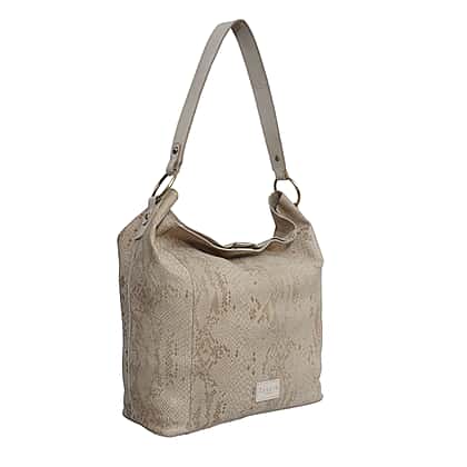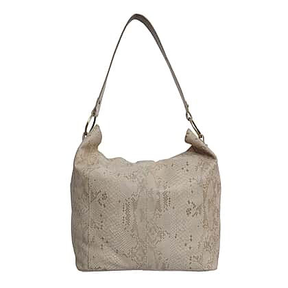 Assots London ESME Genuine Suede Leather Python Print Hobo Bag (Size 34x33x11 Cm) - Cream
