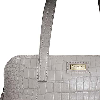 Assots London EVA 100% Genuine Leather Croc Embossed Handbag - Black