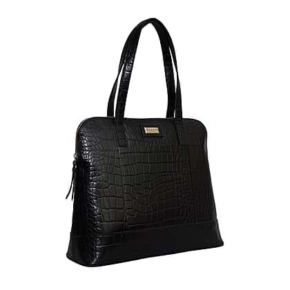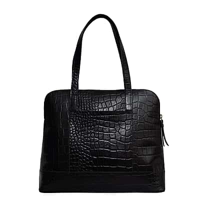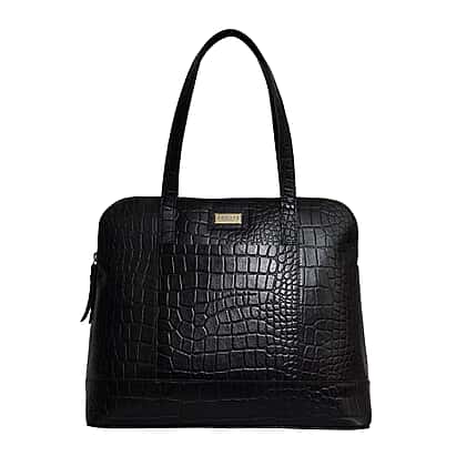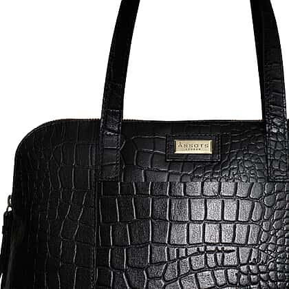 Assots London EVA 100% Genuine Leather Croc Embossed Handbag - Black