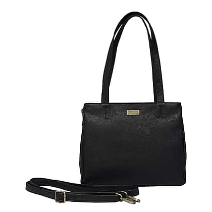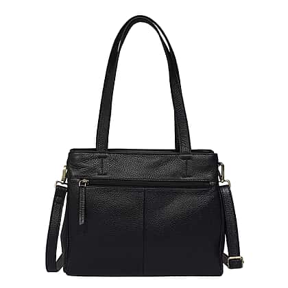 ASSOTS LONDON Genuine Pebble Grain Leather Double Compartment Shoulder Handbag