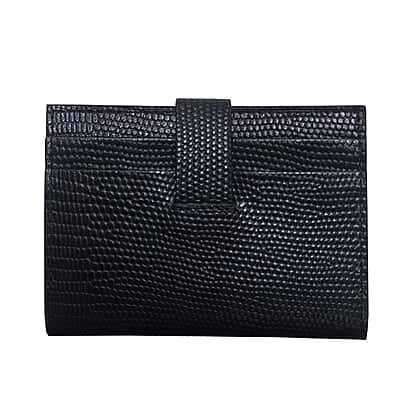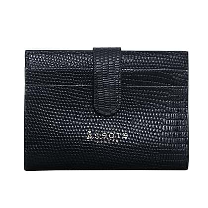 Assots London Grove Lizard Skin Texture 100% Genuine Leather RFID Cardholder - Black