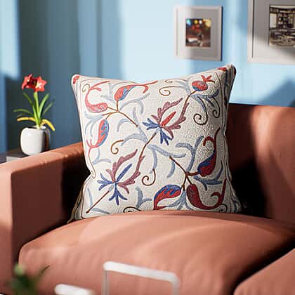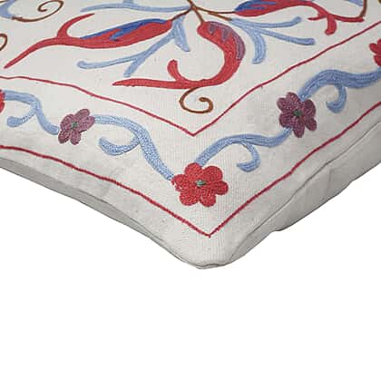 Assots London Hand Made 100% Cotton Embroidered Cushion Cover - Navy & Red