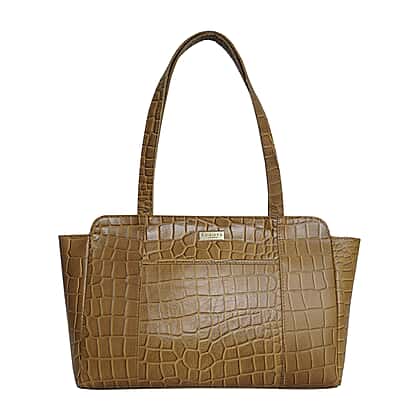 ASSOTS LONDON Judith Genuine Croc Leather Fully Lined Shoulder Bag (Size 32x7x23cm) - Black
