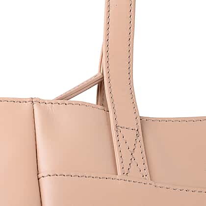 ASSOTS LONDON Linda 100% Genuine Leather Slip Pocket Tote Bag with Zipper Closure (Size 39x27x10 Cm) - Nude