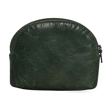 Assots London Lotty 100% Genuine Leather Zip Top Coin Purse (Size 10x2x8 Cm) - Green