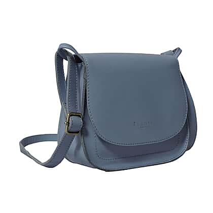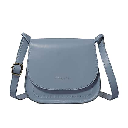 ASSOTS LONDON 'NICOLA' Pastel Blue Smooth Real Leather Crossbody Saddle Bag