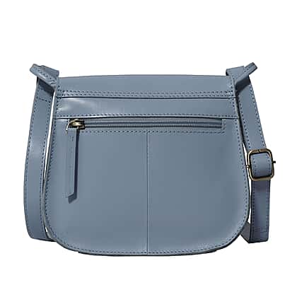 ASSOTS LONDON Nicola Genuine Leather Fully Lined Saddle Bag (Size 19x18x9 Cm) - Pastel Blue