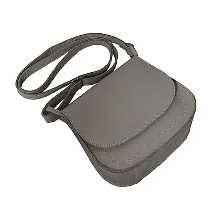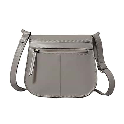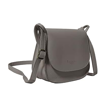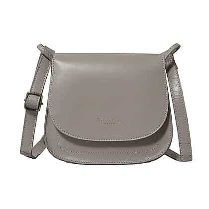 ASSOTS LONDON 'NICOLA' Grey Smooth Real Leather Crossbody Saddle Bag
