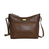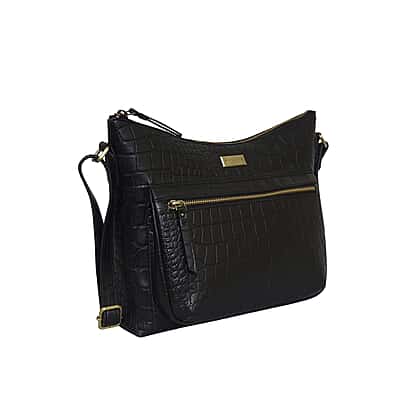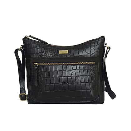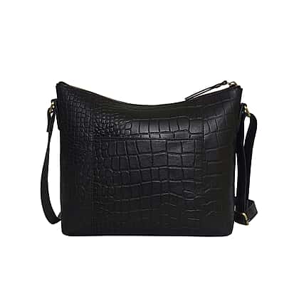 Assots London OLGA Croc Embossed Genuine Leather Crossbody Bag with Zipper Closure and Adjustable Strap (Size 30x9.5x26 Cm) - Black