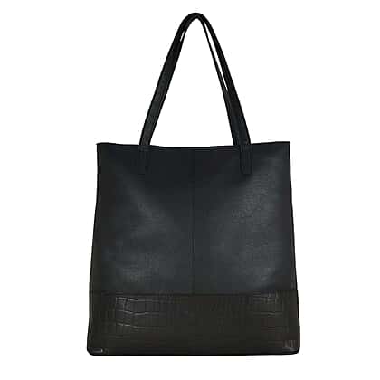 Assots London SIENNA Croc Leather Tote Bag in Black (Size 38x13x35 Cm)
