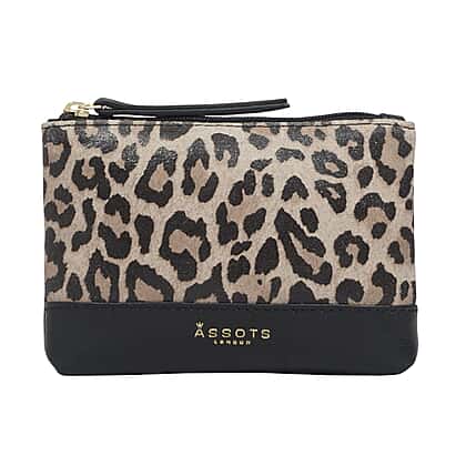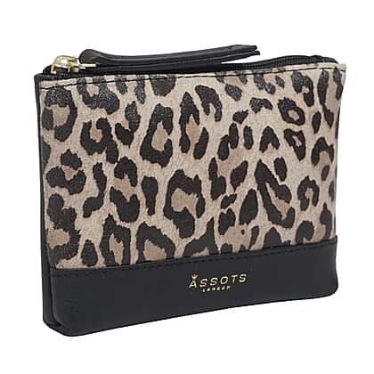 ASSOTS LONDON Teresa 100% Genuine Leather Leopard Pattern Card & Coin Purse (Size 13x10 Cm) - Brown