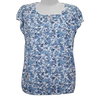 Auburn Cotton Printed Short Sleeve Printed Top in Blue Colour