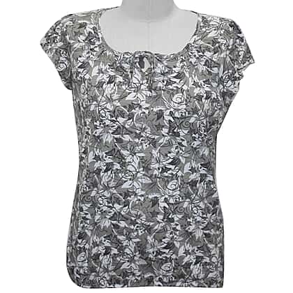 Auburn Cotton Printed Short Sleeve Printed Top in Grey Colour