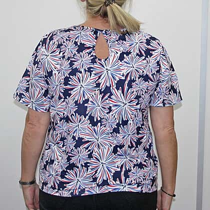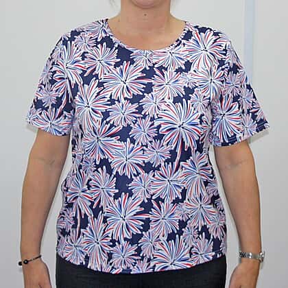 Aura Boutique Printed Short Sleeve Top (Size L) - White & Blue