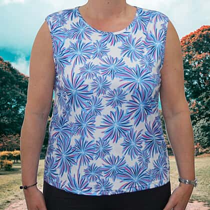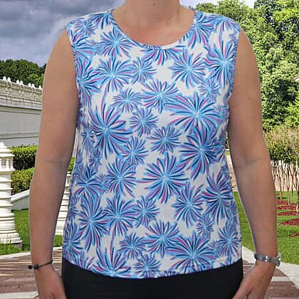 Aura Boutique Printed Sleeveless Top (Size S) - White & Blue