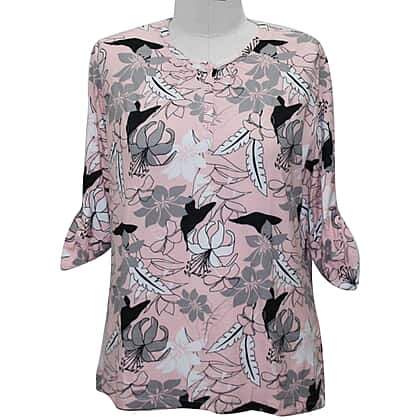 Aura Boutique Supersoft Neck Detail Printed Top in Pink