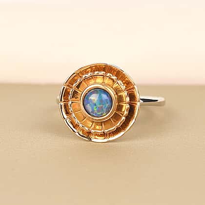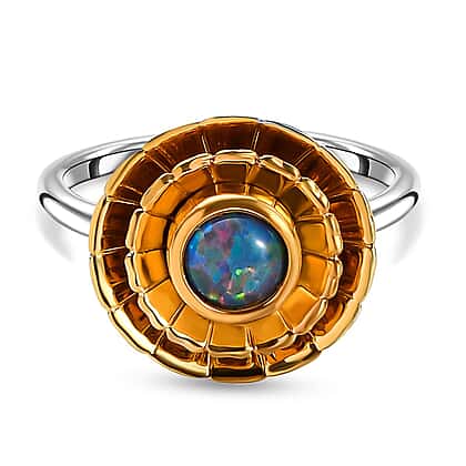 Australian Boulder Opal Triplet Ring in Platinum and Gold Overlay Sterling Silver