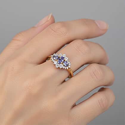 D'Joy Tanzanite, Moissanite Ring in 18K YG PlatingSterling Silver 0.931 Ct.