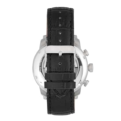 HERITOR Automatic Arthur Sapphire-Coated Mineral Crystal Semi-Skeleton Dial Silver Casing 5 ATM Water Resistance with Black Genuine Leather Crocodile-Embossed Strap