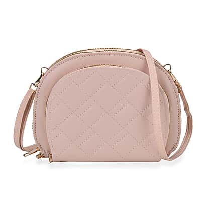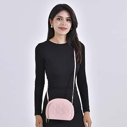 Leatherette Quilted Crossbody Bag with Log Strap - Pink