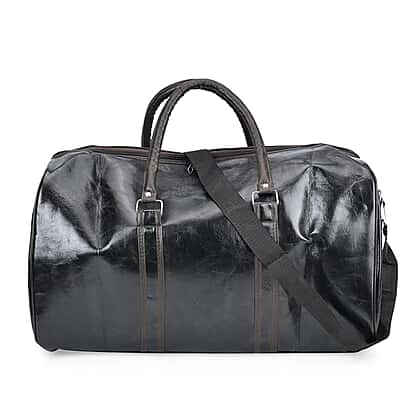 Designer Inspired Travel Duffle Bag with Shoulder Strap - Black