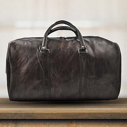 Designer Inspired Travel Duffle Bag with Shoulder Strap - Brown