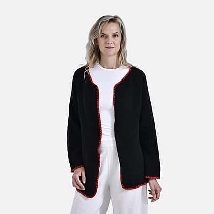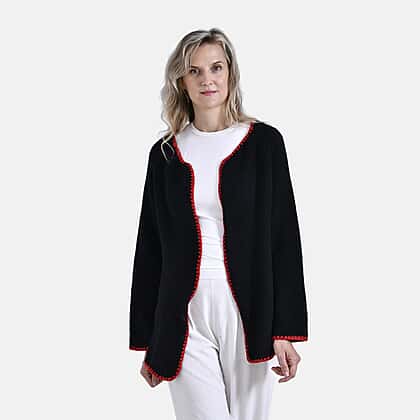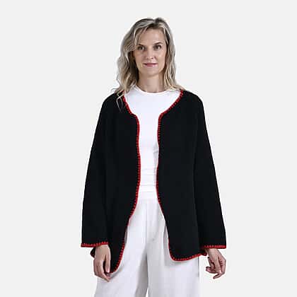 Tamsy Crew Neck Cardigan (One Size) - Black - Red