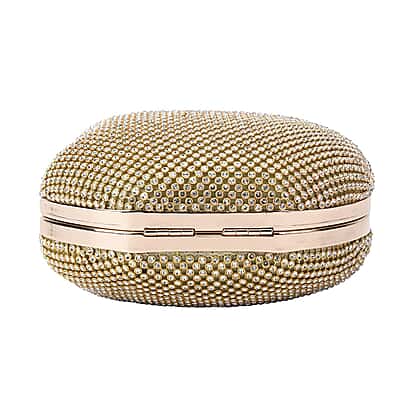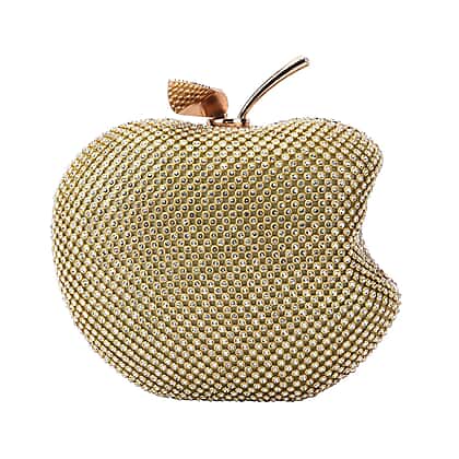 Back By Popular Demand - Apple Shape Crystal Clutch Bag with Long Chain Strap - Toggle Clip - Gold