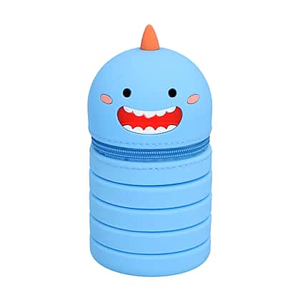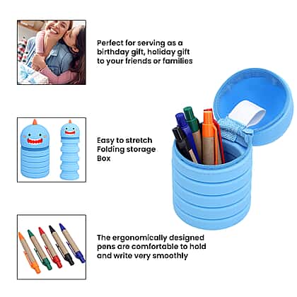 Set of 5 Pens with Extendable Kids Funny Character Stationery Box - Blue