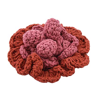 Bali Collection - 100% Cotton Floral Pattern Crochet Brooch - Brick and Pink