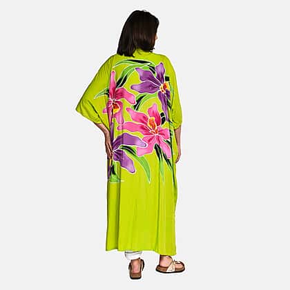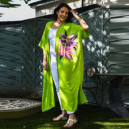 Bali Collection - 100% Viscose Handpainted Floral Pattern Kimono (One Size) - Green