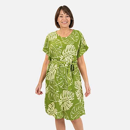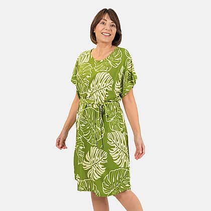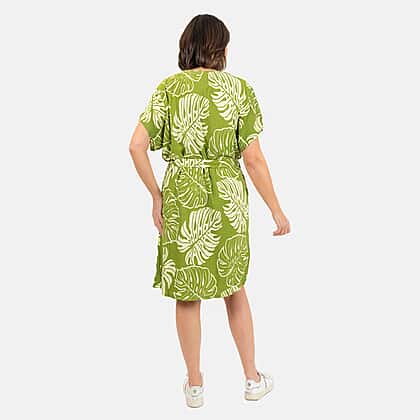 LA MAREY 100% Rayon Tropical Palm Leaf Short Dress