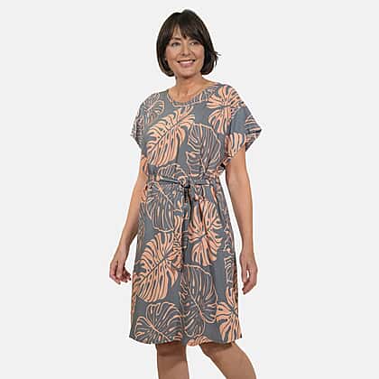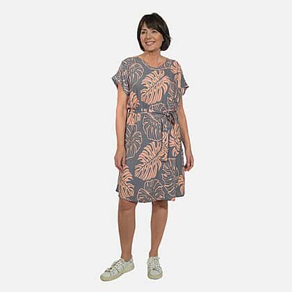 LA MAREY 100% Rayon Tropical Palm Leaf Short Dress