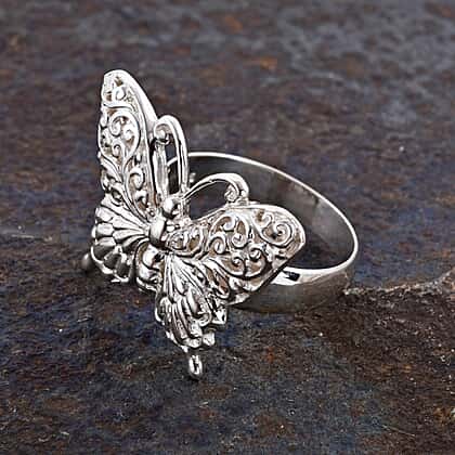 Bali Legacy Collection - Sterling Silver Butterfly Ring, Silver Wt. 7.00 Gms