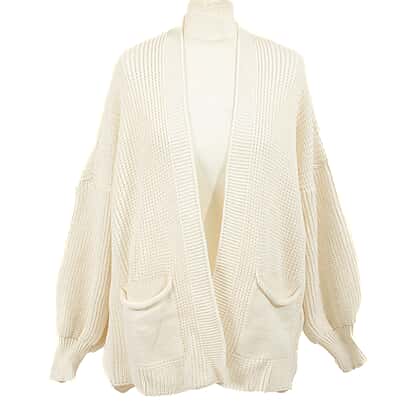 Balloon Sleeve Long Cardigan (One Size 8-18) - Cream