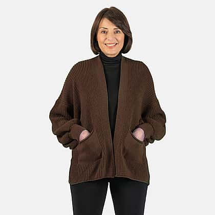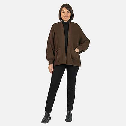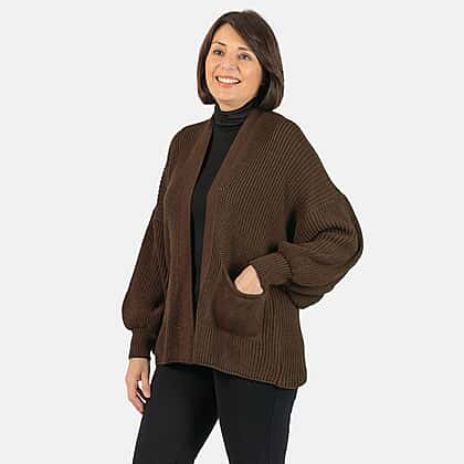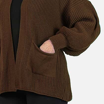 Get cosy in the winter with the Balloon Sleeve Short Cardigan. This one-size-fits-all piece is a stylish and warm addition to your winter wardrobe.The rich chocolate hue adds warmth and sophistication. The balloon sleeves create a playful silhouette, while the short length makes it versatile for layering. Whether paired with jeans or a dress, this cardigan adds a touch of chic comfort. Embrace style and cosiness with every wear.