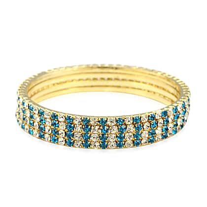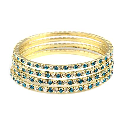 4 Piece Set Firozi and White Austrian Crystal Stacker Bangle in Gold Tone 7.75 Inch