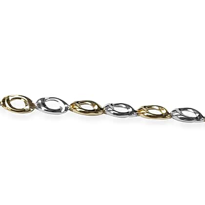 - 9K Yellow and white gold are combined in an alternating to form its dazzling oval links