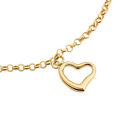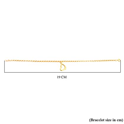 Chain Bracelet with Heart Charm Bracelet in 9K Yellow Gold 7 Inch