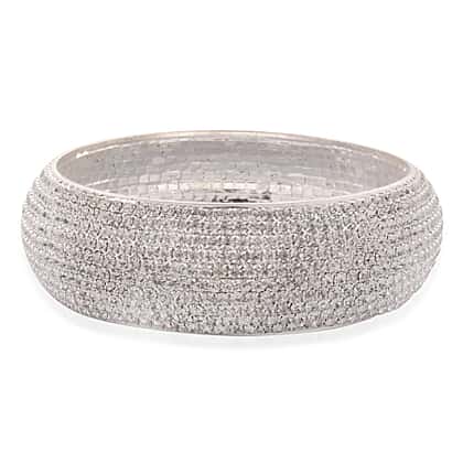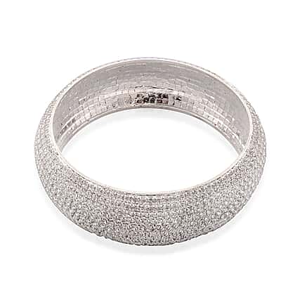 AAA White Austrian Crystal Bangle (Size 8 ) in Silver Tone