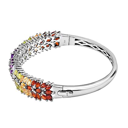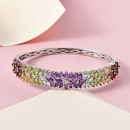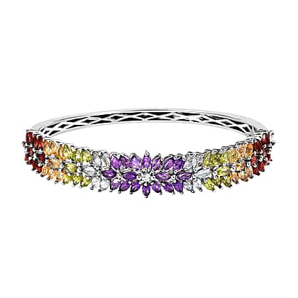 Amethyst and Multi Gemstone Bangle (Size 7.5) in Platinum Overlay Sterling Silver 11.78 Ct, Silver Wt. 23.00 Gms