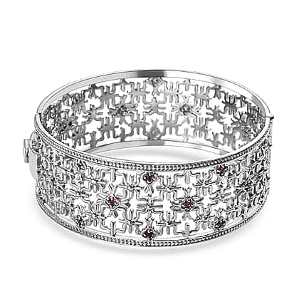 Foilback Amethyst Crystal Bangle (Size 7.5) in Platinum Overlay Silver Tone